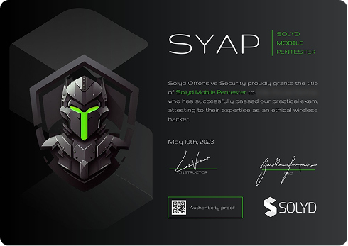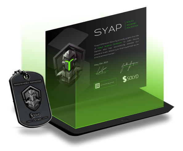 A certificação SYAP (Solyd Android Pentester) atesta que o profissional possui as competências práticas necessárias para realizar testes de intrusão em aplicações móveis Android. A obtenção da SYAP envolve a aprovação em um exame prático de 48 horas que avalia a capacidade do candidato em identificar e explorar vulnerabilidades do ecossistema Android. Durante o exame, o profissional deve demonstrar habilidades em análise estática e dinâmica de aplicativos, engenharia reversa, manipulação de tráfego de rede, identificação de falhas de armazenamento inseguro, e exploração de componentes de aplicativos Android (Activities, Services, Broadcast Receivers, Content Providers). Assim como outras certificações da Solyd, a SYAP exige a elaboração de um relatório técnico detalhado, documentando as vulnerabilidades encontradas e as recomendações para correção. Um profissional certificado SYAP é capaz de avaliar a segurança de aplicativos Android, e fornecer orientações para a mitigação das falhas e desenvolvimento seguro de aplicações móveis.